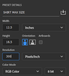 Acceptable file types for print: AI, EPS, PSD, PNG, PDF. To get the best quality prints of non-vector art, your art MUST BE ORIGINALLY CREATED at FULL PRINT SIZE and 300dpi RESOLUTION.
